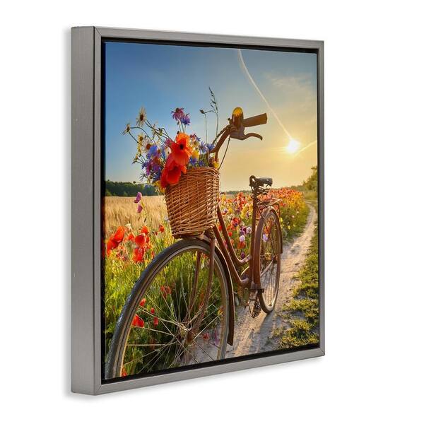 Flower Stop Bicycle by Alina Georgescu Gray Floater Frame Typography Graphic Art Print 18 in. x 18 in.