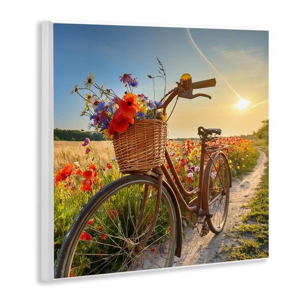 Flower Stop Bicycle by Alina Georgescu Unframed Typography Graphic Art Print 12 in. x 12 in.