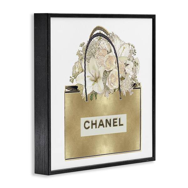 Flowers in Gold Bag by Madeline Blake Black Framed Abstract Giclee Art Print 17 in. x 17 in.