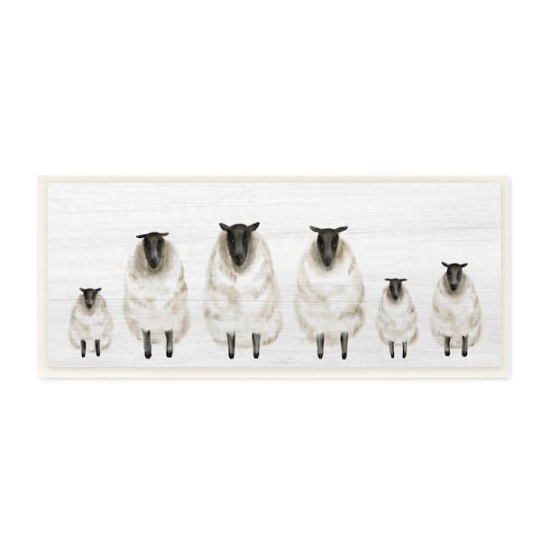 Fluffy Farm Sheep Minimal White Plank Pattern By Daphne Polselli Unframed Print Animal Wall Art 7 in. x 17 in.