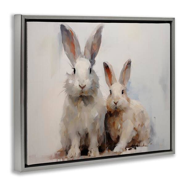 Fluffy Spring Bunnies by Arlington Prints Gray Floater Frame Animal Graphic Art Print 25 in. x 31 in.