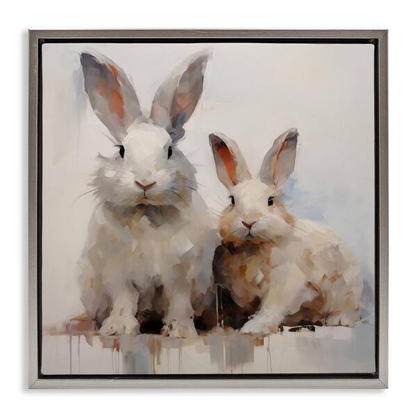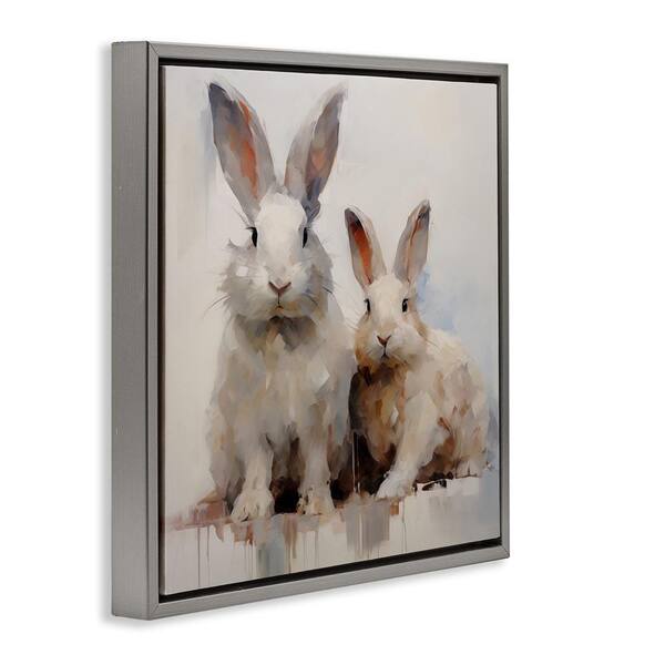 Fluffy Spring Rabbits by Arlington Prints Gray Floater Frame Animal Graphic Art Print 18 in. x 18 in.