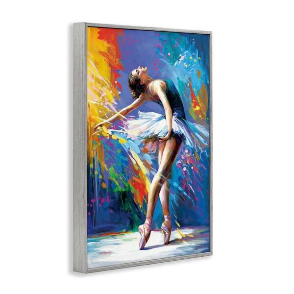 Fluid Ballerina Movement by Leon Devenice Gray Framed People Giclee Art Print 30 in. x 20 in.
