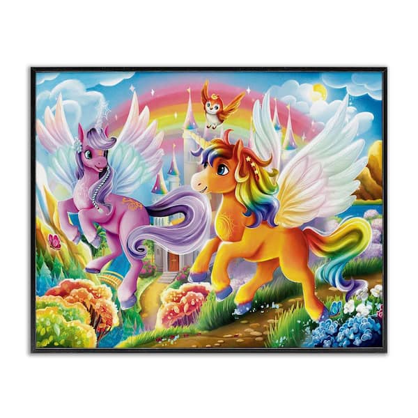 Fluttering Unicorns and Rainbow by Image World Black Framed Fantasy Giclee Art Print 11 in. x 14 in.