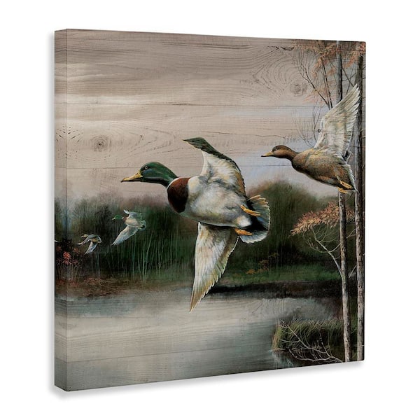 Flying Ducks in Rustic Nature by Ruane Manning Unframed Animal Graphic Art Print 36 in. x 7 in.