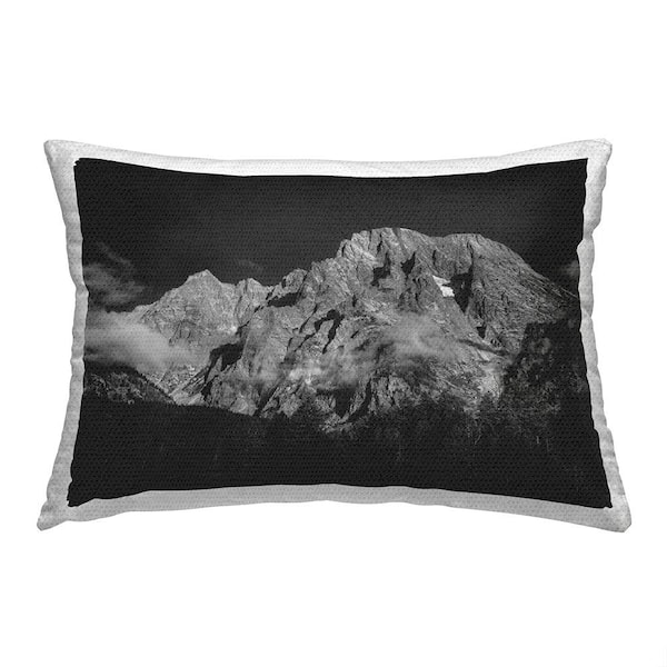 Foggy Mountain Peak Grey Rectangular Outdoor Throw Pillow