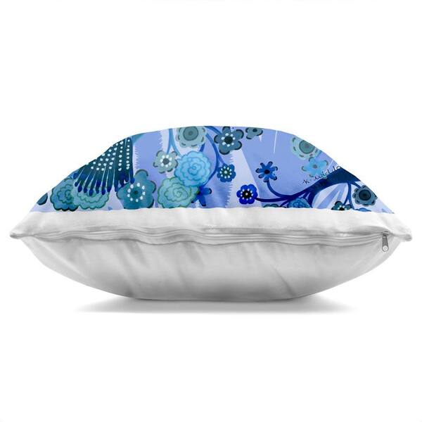 Folk Style Blue Bird Blue Abstract Polyester 18 in. x 18 in. Throw Pillow