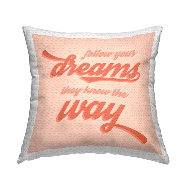 Follow Your Dreams Retro Phrase Orange Square Outdoor Throw Pillow