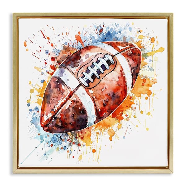 Football Chromatic Splash by LSR Design Studio Gold Floater Frame Sports Graphic Art Print 18 in. x 18 in.