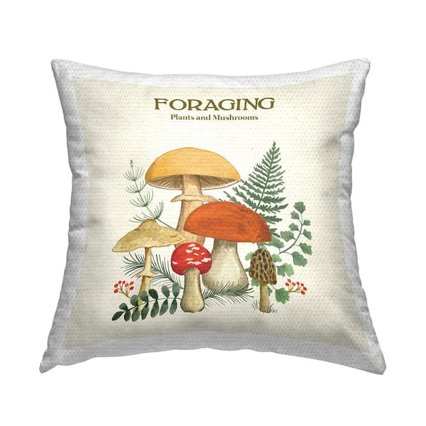 Foraging Plants and Mushrooms Beige Square Outdoor Throw Pillow
