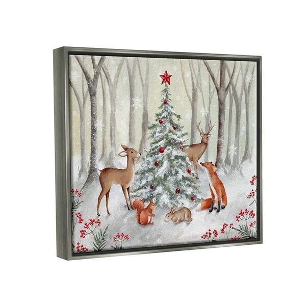 Forest Animal & Christmas Tree by Emma Leach 1 Piece Floater Frame Graphic Print Animal Poster Art Print 21 in. x 17 in.