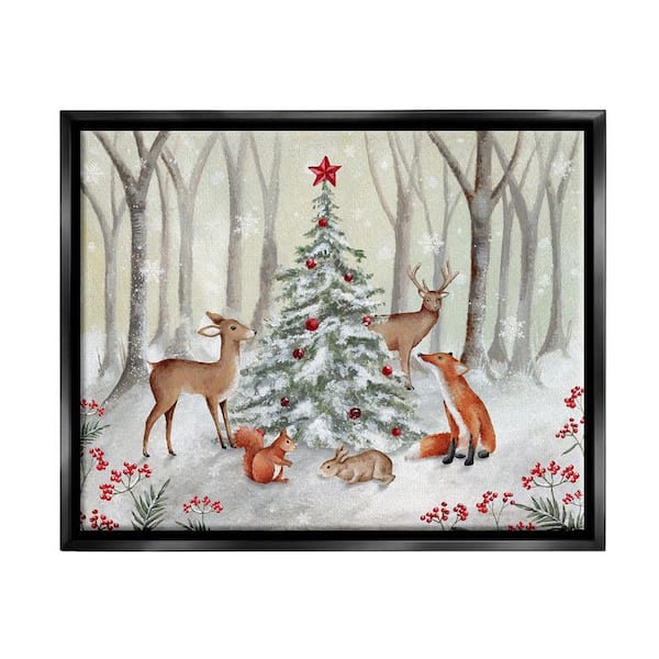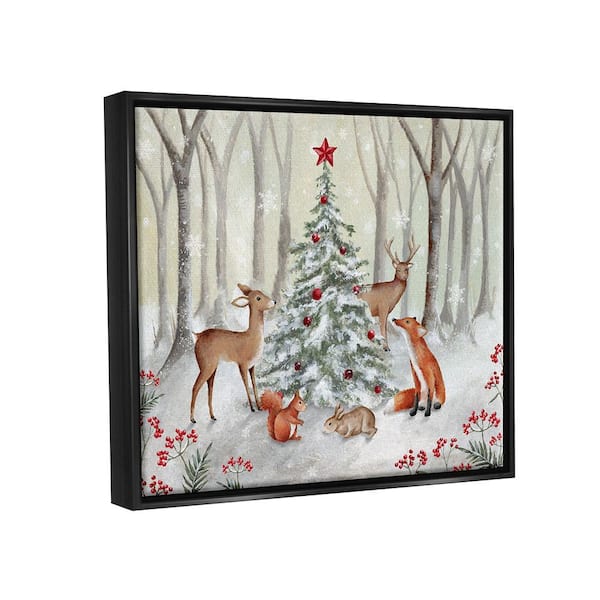 Forest Animal & Christmas Tree by Emma Leach 1-Piece Floater Frame Graphic Print Animal Poster Art Print 31 in. x 25 in.