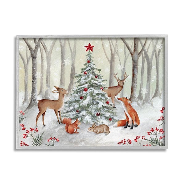 Forest Animals and Christmas Tree by Emma Leach 1-Piece Framed Graphic Print Animal Poster Art Print 20 in. x 16 in.