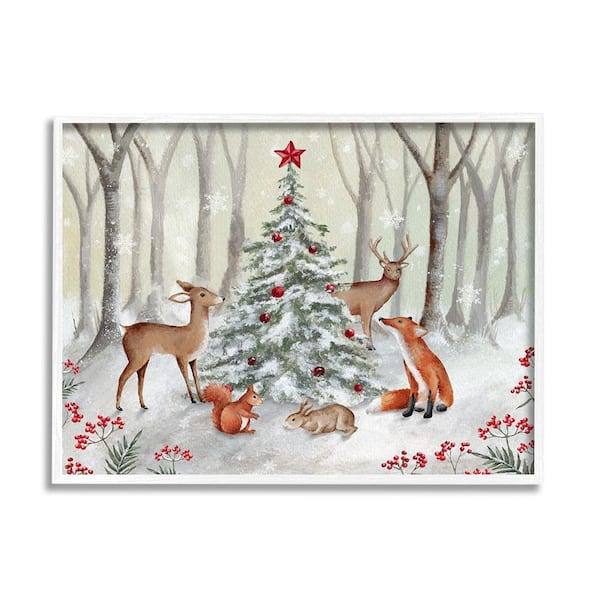 Forest Animals and Christmas Tree by Emma Leach 1 Piece Framed Graphic Print Animal Poster Art Print 20 in. x 16 in.