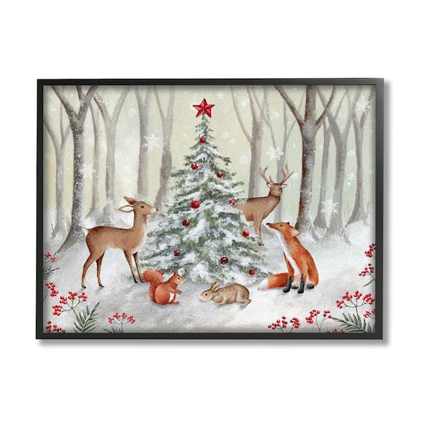 Forest Animals and Christmas Tree by Emma Leach 1-Piece Framed Graphic Print Animal Poster Art Print 30 in. x 24 in.