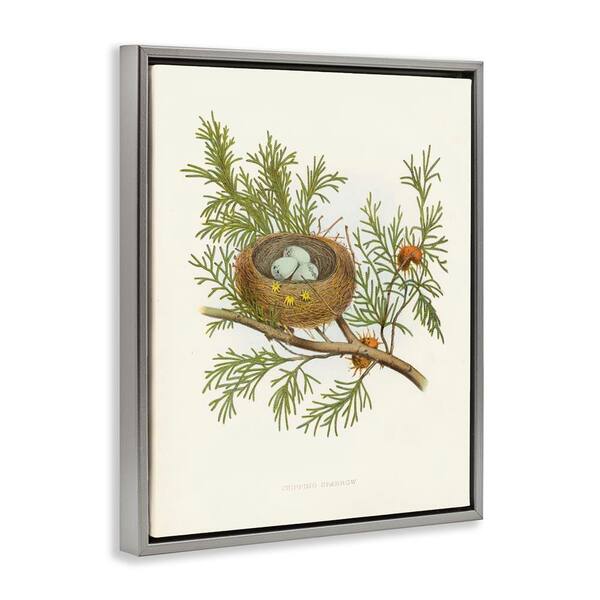 Forest Bird Nest on Branch by Tina Higgins Designs, Inc. Gray Floater Frame Nature Graphic Art Print 31 in. x 25 in.