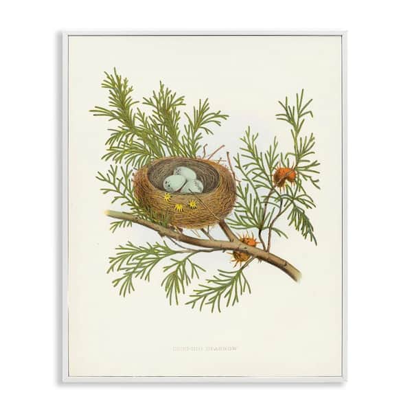 Forest Bird Nest on Branch by Tina Higgins Designs, Inc. White Framed Nature Giclee Art Print 14 in. x 11 in.
