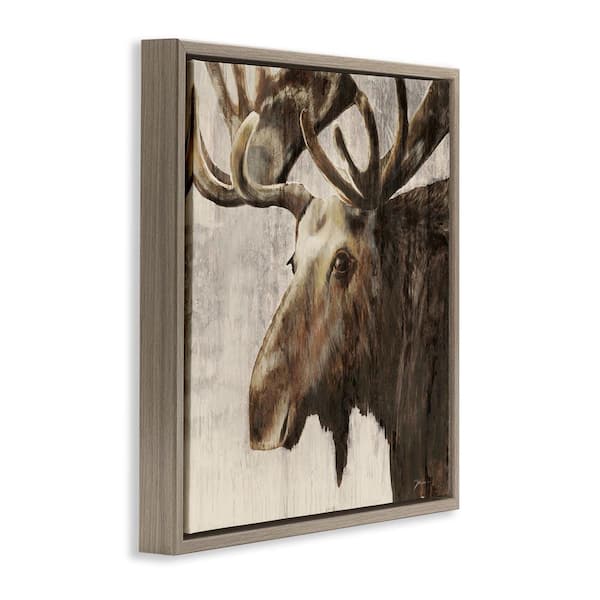 Forest Moose Distressed by Liz Jardine Brown Floater Frame Animal Graphic Art Print 18 in. x 18 in.
