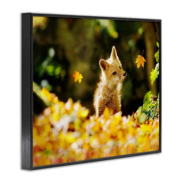 Fox Watching Autumn Leaves by Carrie Ann Grippo-Pike Black Framed Graphic Animal Art Print 11 in. x 14 in.