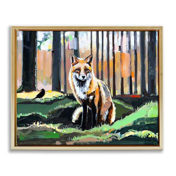 Fox in Forest Trees by Adam Swanson Gold Floater Frame Animal Graphic Art Print 17 in. x 21 in.
