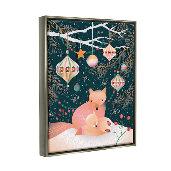 Foxes Beneath Tree by Verbrugge Watercolor 1 Piece Floater Frame Graphic Print Animal Poster Art Print 21 in. x 17 in.