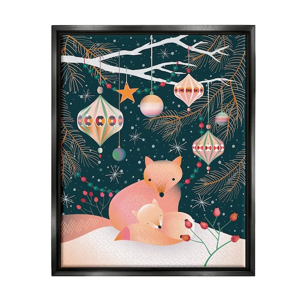 Foxes Beneath Tree by Verbrugge Watercolor 1 Piece Floater Frame Graphic Print Animal Poster Art Print 31 in. x 25 in.