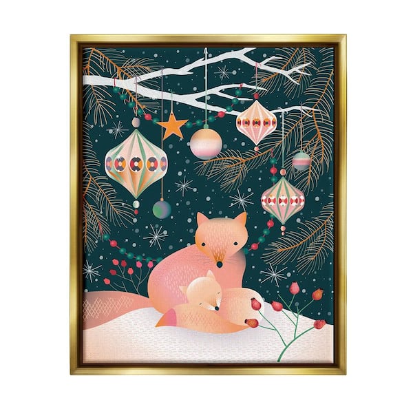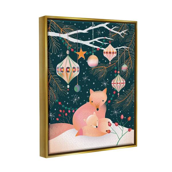 Foxes Beneath Tree by Verbrugge Watercolor 1 Piece Floater Frame Graphic Print Animal Poster Art Print 31 in. x 25 in.