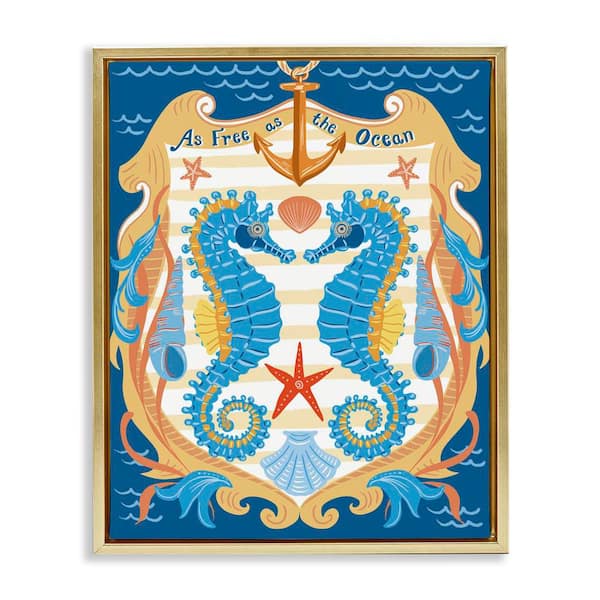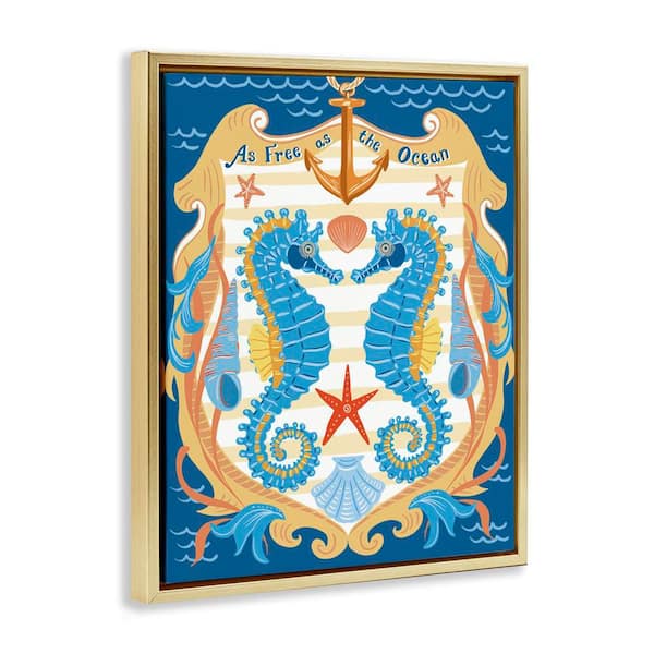 Free As Ocean Seahorses by Jo Reid Gold Floater Frame Coastal Graphic Art Print 31 in. x 25 in.