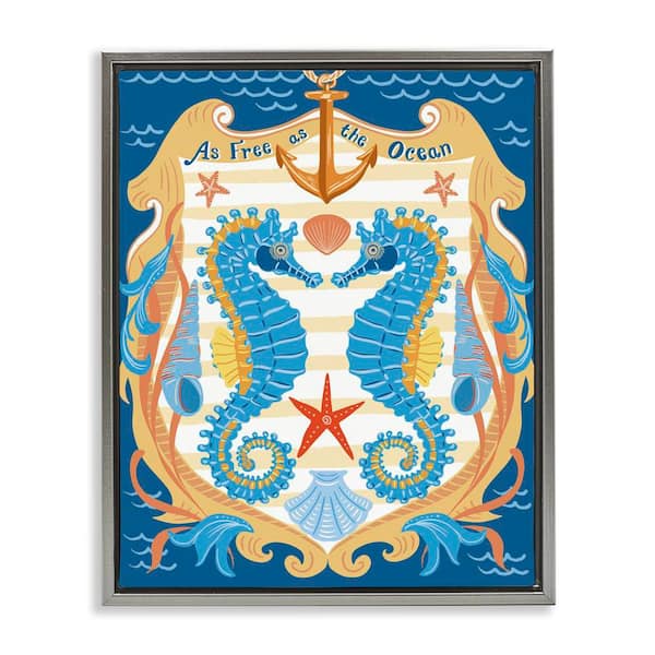 Free As Ocean Seahorses by Jo Reid Gray Floater Frame Coastal Graphic Art Print 31 in. x 25 in.