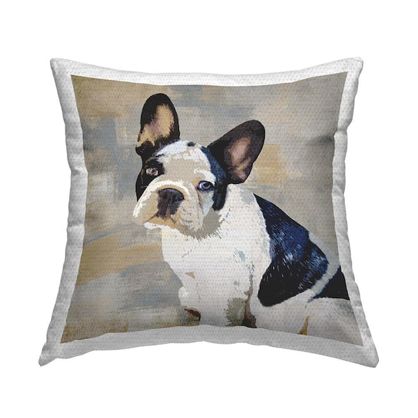French Bulldog Dog Grey Beige Neutral Patchwork Beige Square Outdoor Throw Pillow