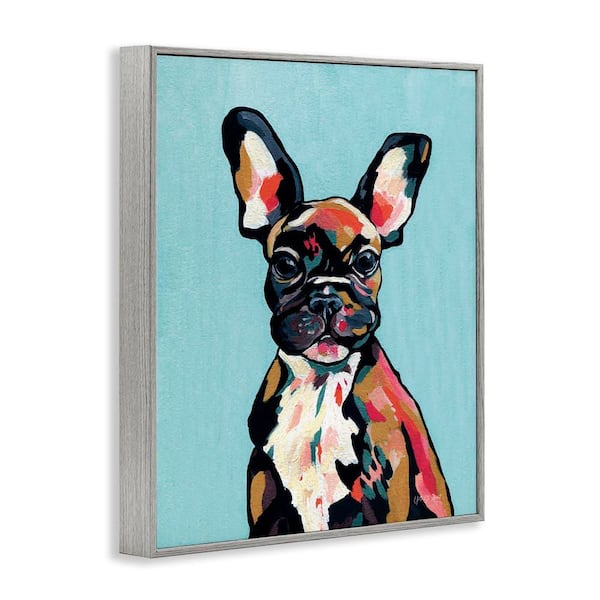 French Bulldog Modern by Yvette St. Amant Gray Framed Animal Giclee Art Print 14 in. x 11 in.