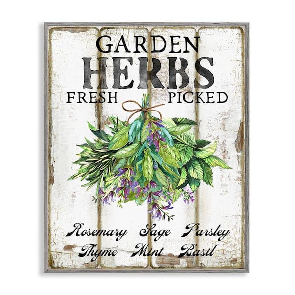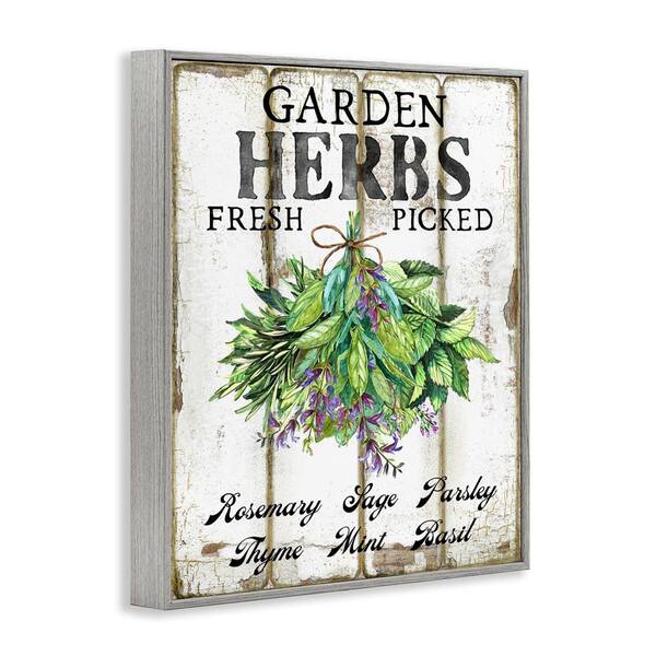 Fresh Picked Garden Herbs by Creatif Belle Gray Framed Food Giclee Art Print 20 in. x 16 in.