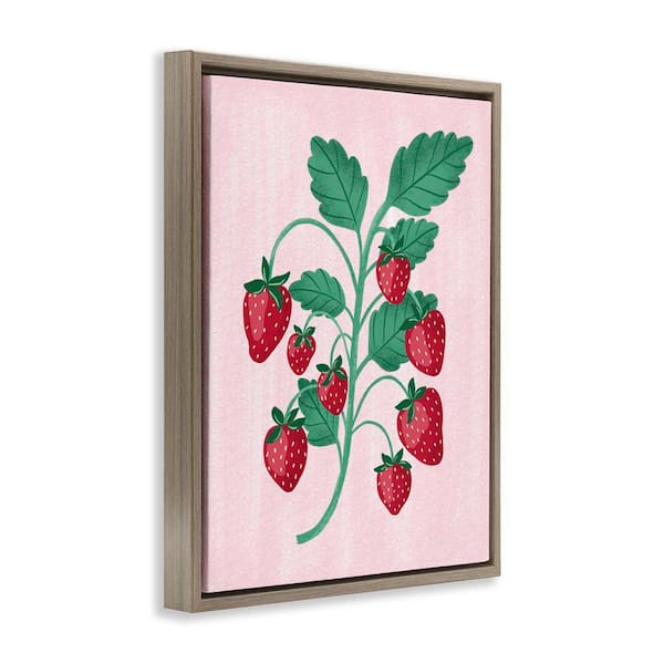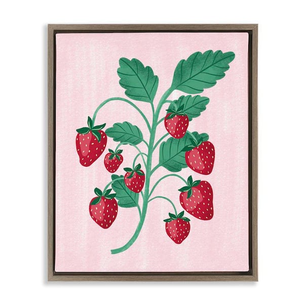 Fresh Strawberries Branch by Aralma Brown Floater Frame Food Graphic Art Print 31 in. x 25 in.