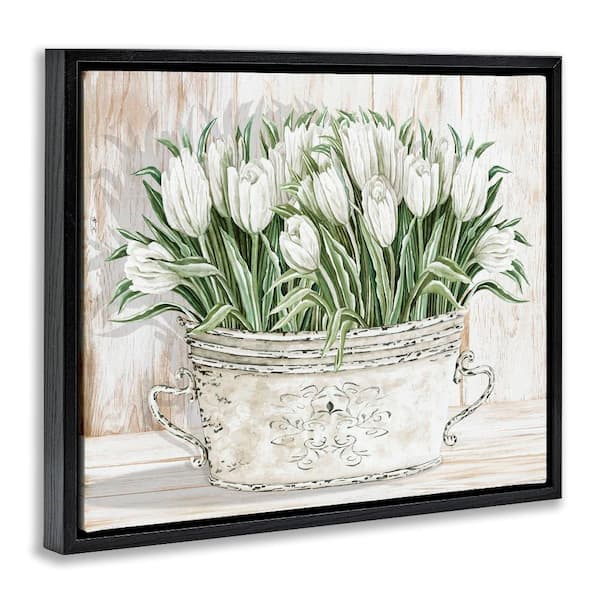 Fresh White Tulip Flowers Vintage by Cindy Jacobs 1 Piece Black Floater Frame Nature Graphic Art Print 31 in. x 25 in.