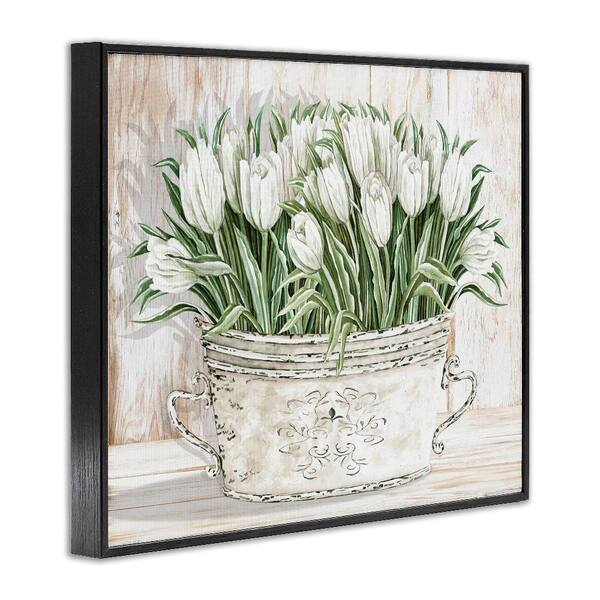 Fresh White Tulip Flowers Vintage by Cindy Jacobs 1-Piece Black Framed Nature Giclee Art print 14 in. x 11 in.