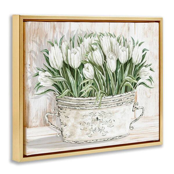 Fresh White Tulip Flowers Vintage by Cindy Jacobs 1-Piece Gold Floater Frame Nature Graphic Art print 25 in. x 31 in.