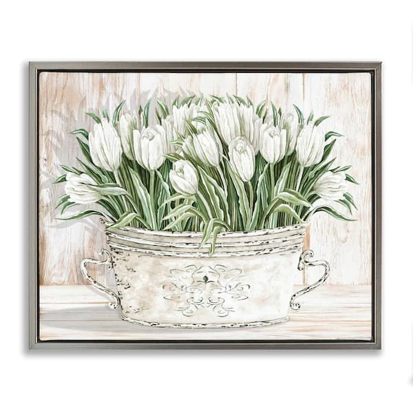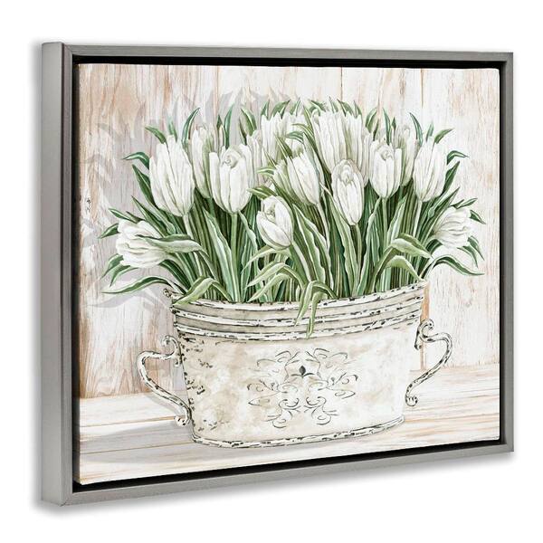 Fresh White Tulip Flowers Vintage by Cindy Jacobs 1-Piece Gray Floater Frame Nature Graphic Art print 25 in. x 31 in.