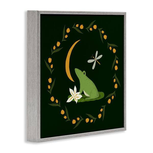 Frog & Moon Garland by Michelle Ingari Designs Gray Framed Animal Giclee Art Print 17 in. x 17 in.