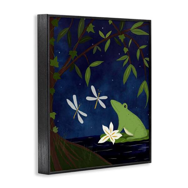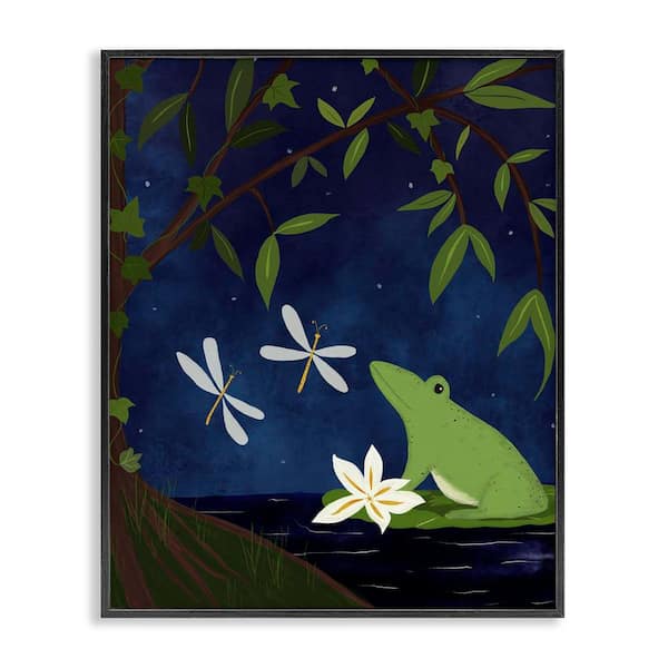 Frog in Night Forest by Michelle Ingari Designs Black Framed Animal Giclee Art Print 30 in. x 24 in.