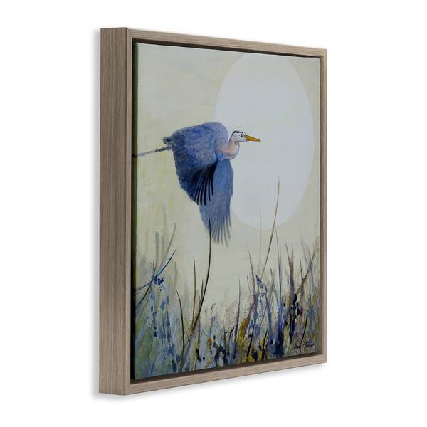 Full Moon & Heron by Floy Zittin Brown Floater Frame Animal Graphic Art Print 25 in. x 25 in.