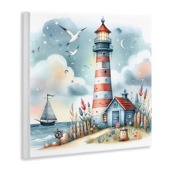 Fun Maritime Lighthouse by LSR Design Studio Unframed Coastal Graphic Art Print 12 in. x 12 in.