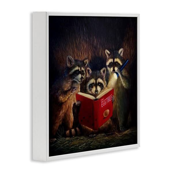 Fun Raccoon Trio Reading Book by Lucia Heffernan 1-Piece White Framed Animal Giclee Art Print 24 in. x 24 in.