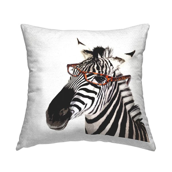 Fun Zebra Wearing Glasses Wildlife Black Square Outdoor Throw Pillow