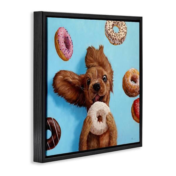 Funny Dog Licking Donut by Lucia Heffernan 1-Piece Black Floater Frame Animal Graphic Art Print 18 in. x 18 in.