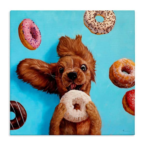 Funny Dog Licking Donut by Lucia Heffernan 1-Piece Gallery Wrapped Unframed Animal Graphic Art Print 24 in. x 24 in.