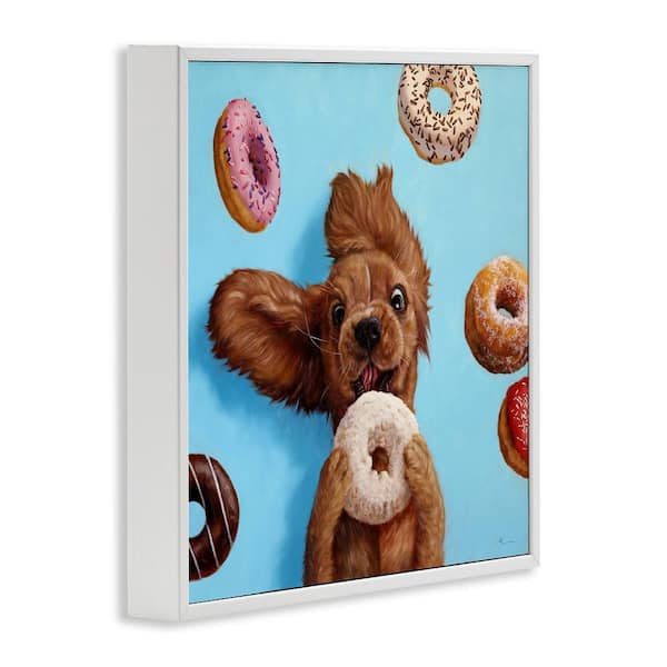 Funny Dog Licking Donut by Lucia Heffernan 1-Piece White Framed Animal Giclee Art Print 24 in. x 24 in.