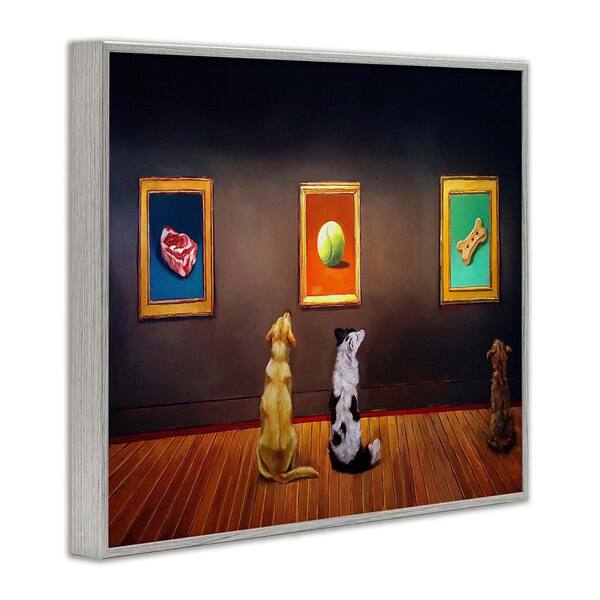 Funny Dog Museum Gallery Animals by Lucia Heffernan 1-Piece Gray Framed Animal Giclee Art Print 30 in. x 24 in.