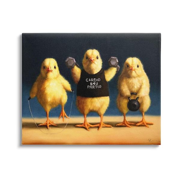 Funny Exercise Workout Chicks by Lucia Heffernan 1-Piece Wrapped Unframed Animal Graphic Art Print 30 in. x 24 in.