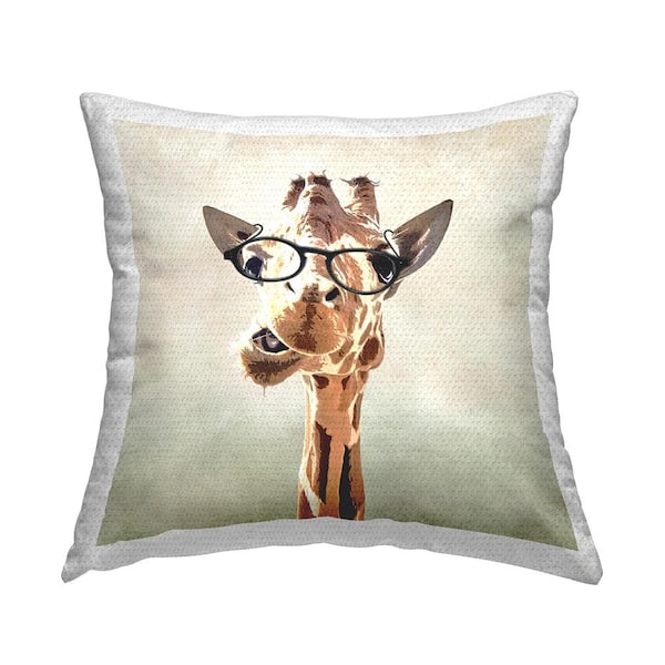 Funny Giraffe Wearing Glasses Beige Square Outdoor Throw Pillow