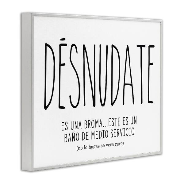 Funny Half Bath Desnudate by Lettered and Lined White Framed Typography Giclee Art Print 16 in. x 20 in.